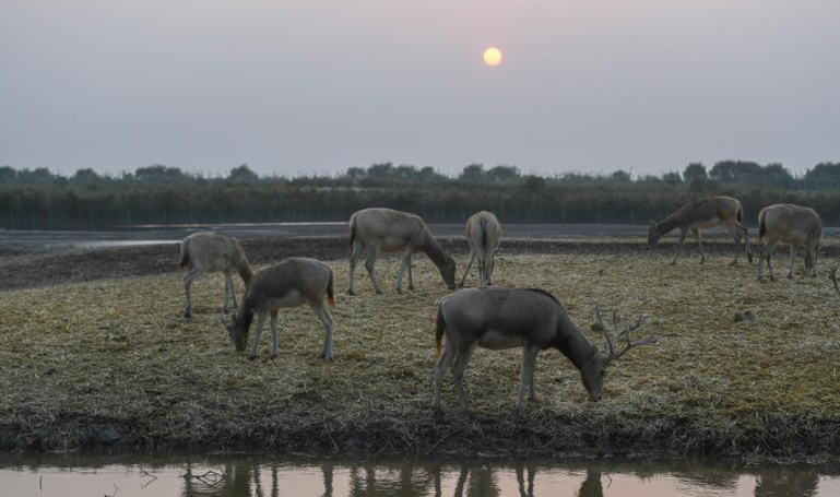杭州湾湿地的落日秋韵