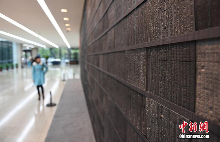 3月7日,《西湖志》刻本墙吸引当地市民驻足。近日,中国水印版画大展在浙江杭州展出,各类水印版画作品集中亮相,呈现千年民族艺术之美,展现“东方智慧”。中新社记者王刚 摄