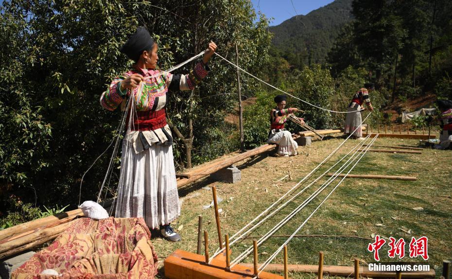 4月11日,傈僳族妇女正在绕麻线。四川凉山德昌县南山傈僳族乡,一群傈僳族妇女围坐一起,将火草搓成线与麻线交织一起织布做衣。随着科技发展,傈僳族祖祖辈辈传承的织布技艺面临着传承问题,当地希望通过展示,让更多的人了解并喜欢纯天然的火草麻布。中新社记者刘忠俊 摄