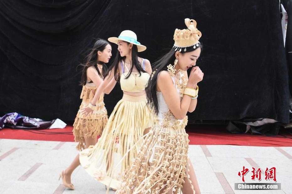 世界地球日 模特身穿草编服饰走秀倡导环保生活