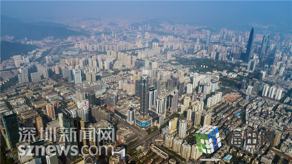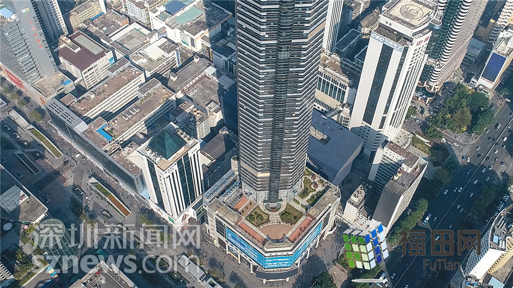 大楼全貌,远处是京基100和地王大厦。