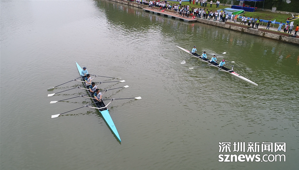 市水务局、龙华区等团员青年在观澜河上划赛艇