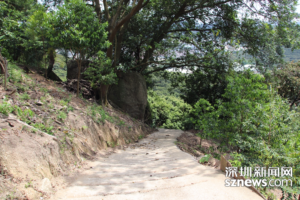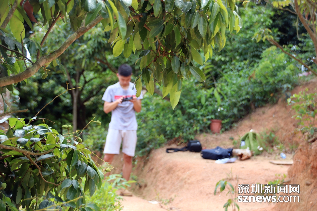 5月16日,深圳新闻网记者爬上羊台山,用无人机和相机拍下羊台山毁林案件涉案的两栋违法建筑拆除后的情景。记者从羊台山隐蔽的一处登山,山路崎岖且陡峭,沿路都是荔枝林,多头大型犬见到陌生人狂吠不已。耗时三四十分钟登临山腰,可俯瞰西丽水库,视野极佳。