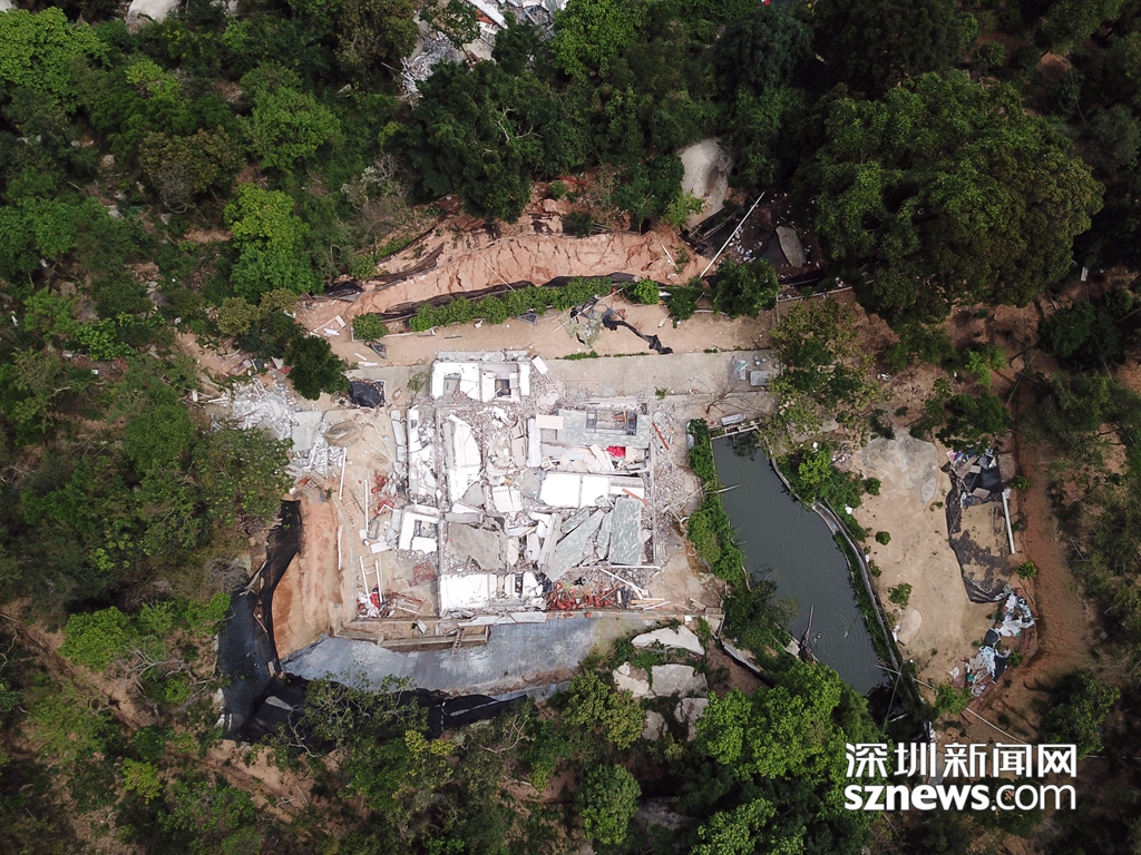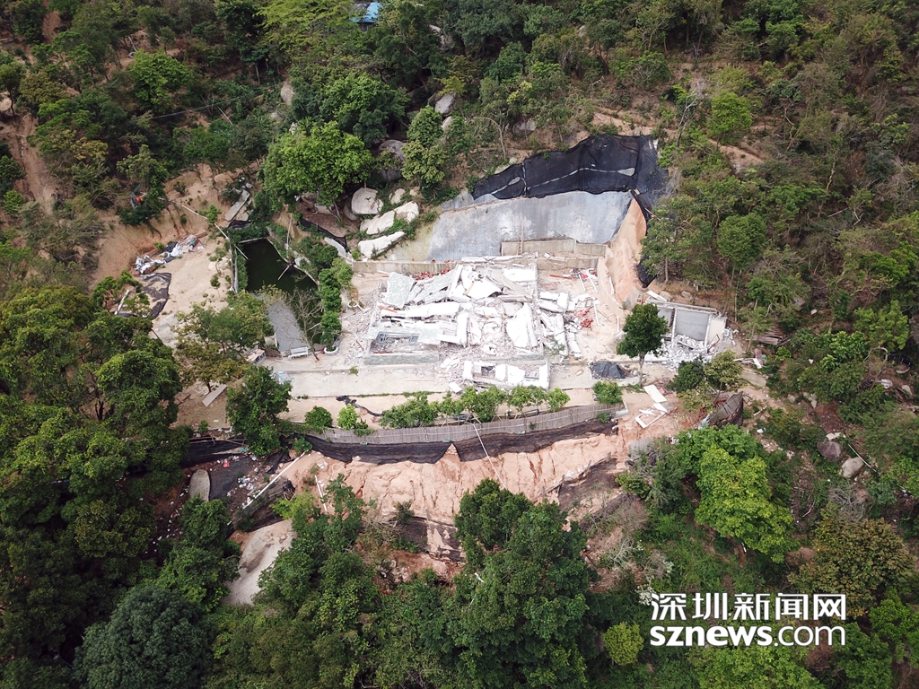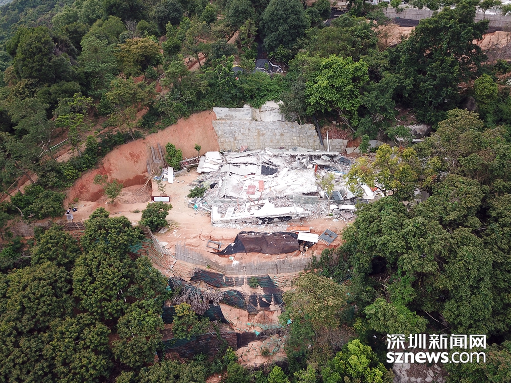 深圳新闻网无人机从高空拍下羊台山两处被拆除违法建筑