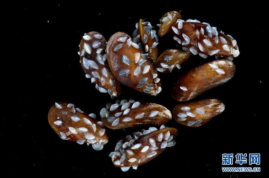 “深海勇士”号在“海马冷泉”采集的贻贝样品(5月19日摄)。新华社记者 张建松 摄