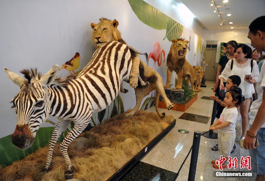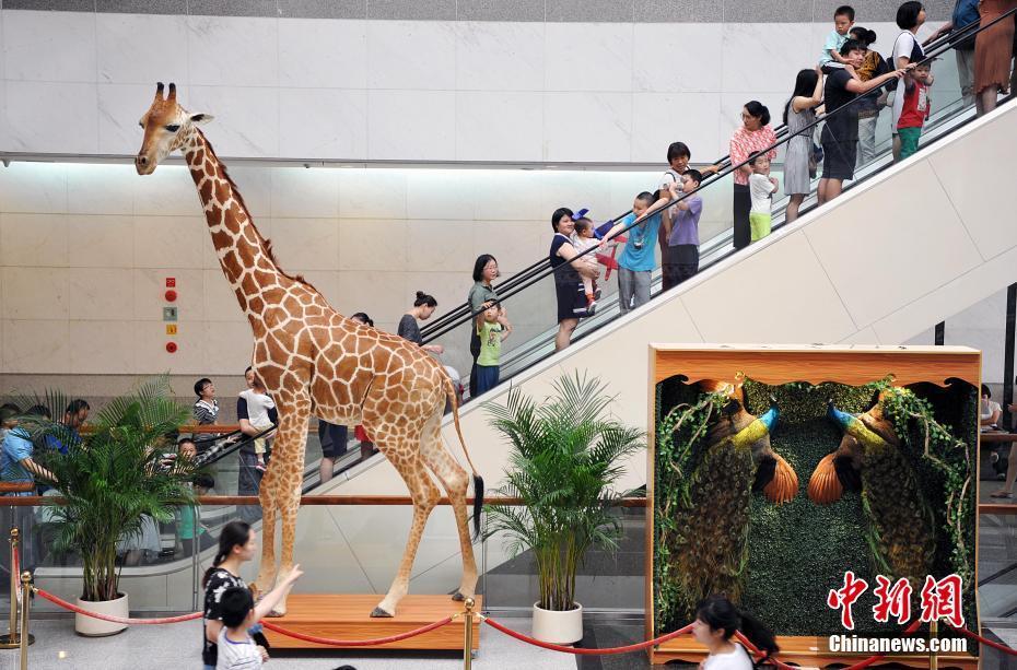 5月27日,各类飞禽走兽活灵活现地出现在民众的眼前。正在福建博物院展出的第四届中国动物标本大赛的257件惟妙惟肖的标本作品集中对外开放,让民众如进入“动物世界”。本次大赛汇集了全国标本制作企业、博物馆、大专院校、研究所等60多家单位参加,标本涵盖哺乳类、鸟类、爬行类、两栖类、鱼类等动物类群的皮张和骨骼标本。主办方希望通过标本大赛,向公众展现动物世界的美丽,宣传生物多样性和生态文明,借鉴吸收国际标本制作先进经验,提高中国野生动植物标本制作的整体水平。图为大赛参赛作品展吸引了许多民众前来观赏。中新社记者 张斌 摄