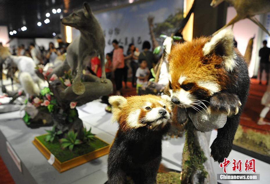 5月27日,各类飞禽走兽活灵活现地出现在民众的眼前。正在福建博物院展出的第四届中国动物标本大赛的257件惟妙惟肖的标本作品集中对外开放,让民众如进入“动物世界”。本次大赛汇集了全国标本制作企业、博物馆、大专院校、研究所等60多家单位参加,标本涵盖哺乳类、鸟类、爬行类、两栖类、鱼类等动物类群的皮张和骨骼标本。主办方希望通过标本大赛,向公众展现动物世界的美丽,宣传生物多样性和生态文明,借鉴吸收国际标本制作先进经验,提高中国野生动植物标本制作的整体水平。图为大赛参赛作品小熊猫。中新社记者 张斌 摄