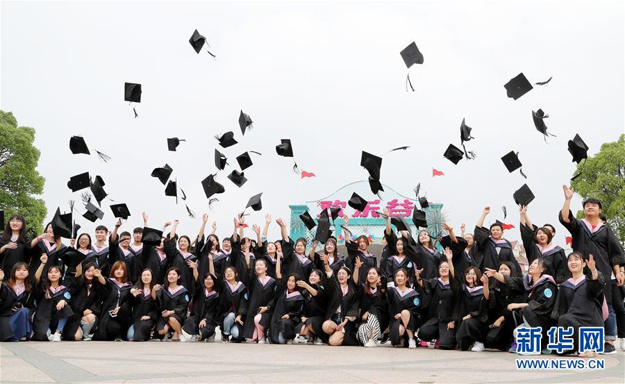 6月10日,毕业生们在欢乐谷广场上拍合影。
