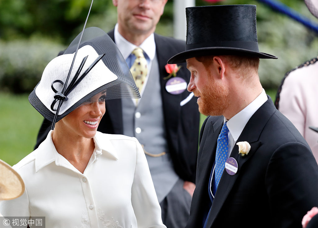 当地时间2018年6月19日,英国阿斯科特,英国阿斯科特皇家赛马会首日,梅根王妃出席皇家赛马会。