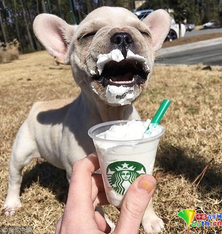 2016年9月22日讯(具体拍摄时间不详),“狗生”百态,一只吃到冰淇淋很开心的小狗。