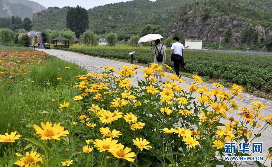 近日,位于燕山山脉深处的北京市密云区太师屯镇车道峪村的人间花海花卉景区内,薰衣草、百日菊等数十种鲜花相继盛开,吸引不少游人前来避暑赏花。近年来,北京市密云区依托山区自然环境优势,大力发展登山、赏花、民俗等观光旅游产业,带动山区农民致富。