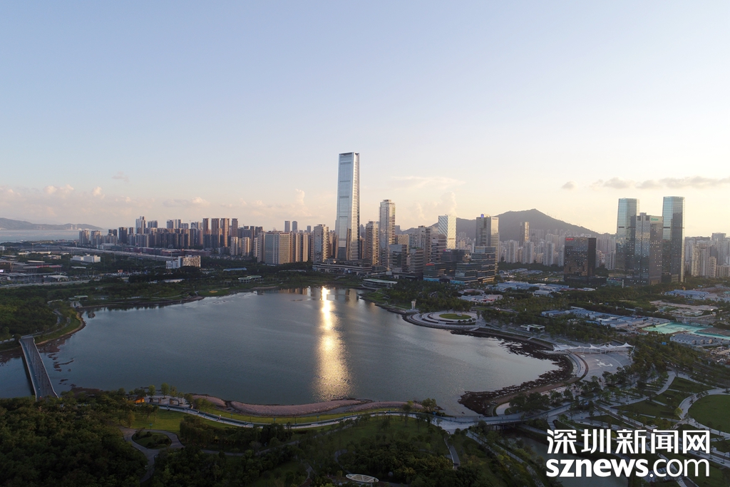 夕阳为深圳湾体育馆和华润大厦打上柔美的轮廓光
