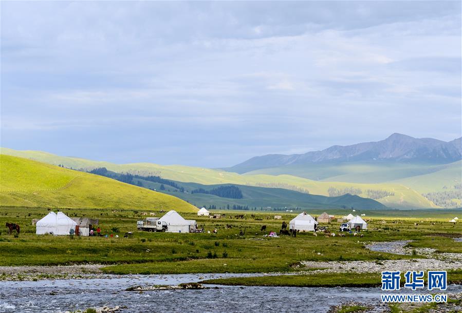 进入7月,被誉为“空中草原”的新疆那拉提景区日均入园游客在5000人次左右,迎来旅游旺季。那拉提景区地处新疆伊犁河谷东端,是世界四大草原之一的亚高山草甸植物区,自古以来就是著名的牧场。新华社记者 赵戈 摄