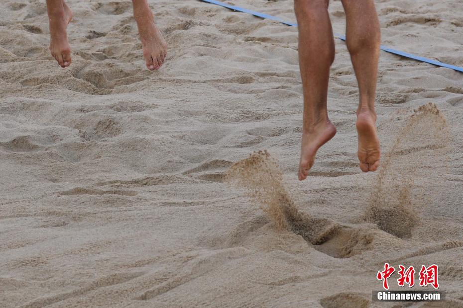 7月11日,在南京举行的2018国际排联沙滩排球U19世界锦标赛进入第二天的赛程,中外运动员轮番上场,捉对“厮杀”,一决高下。中新社记者泱波 摄