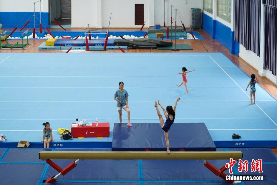 7月16日,小学员在贵州榕江县少年儿童业余体操运动学校内进行体操训练。位于月亮山深处的贵州省黔东南苗族侗族自治州榕江县,数十年来坚持少年儿童体操培养、训练,对于全县有良好身体条件的少年儿童进行免费集中培训。目前该县每年有60余名儿童在业余体操运动学校进行训练。炎炎夏日,孩子们不惧酷暑,刻苦训练追寻着自己的“体操梦”。据了解,自1972年以来,榕江县先后向贵州省体操队、蹦床队输送了21名运动员;其中有6名运动员进入国家体操队,10名运动员荣获“国家健将级运动员”称号,5名运动员荣获“国际健将级运动员”称号,其中体操名将刘榕冰是2014年体操世锦赛男团冠军成员之一。2004年,榕江县被贵州省体育局授予“贵州体操之乡”称号。中新社记者贺俊怡 摄