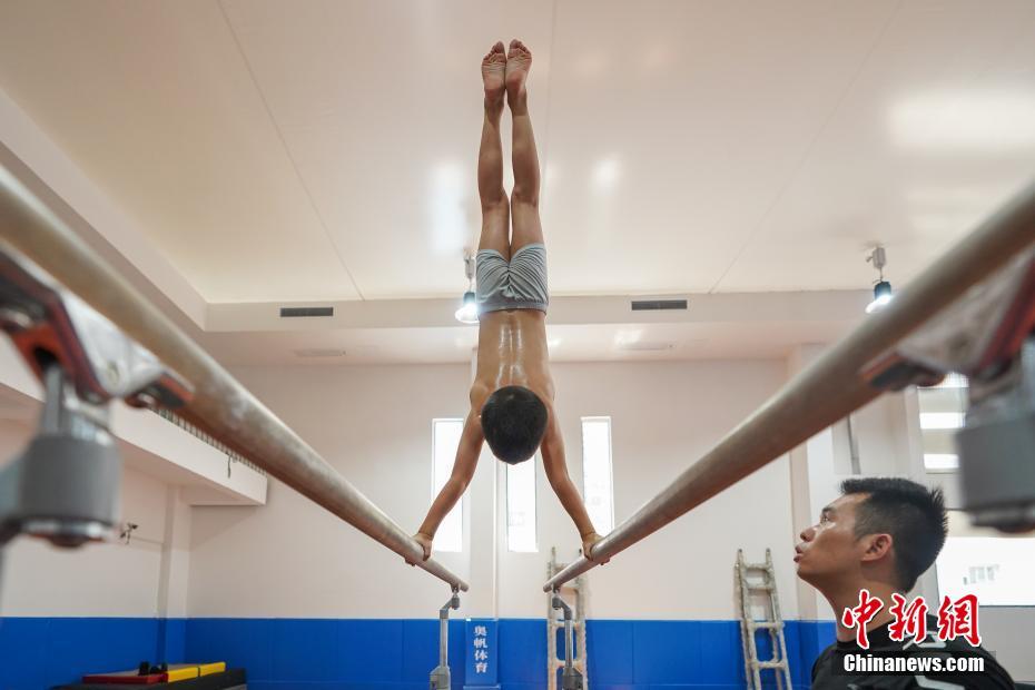 7月16日,教练刘诗亚(右)在贵州榕江县少年儿童业余体操运动学校内指导小学员叶占嵩进行训练。位于月亮山深处的贵州省黔东南苗族侗族自治州榕江县,数十年来坚持少年儿童体操培养、训练,对于全县有良好身体条件的少年儿童进行免费集中培训。目前该县每年有60余名儿童在业余体操运动学校进行训练。炎炎夏日,孩子们不惧酷暑,刻苦训练追寻着自己的“体操梦”。据了解,自1972年以来,榕江县先后向贵州省体操队、蹦床队输送了21名运动员;其中有6名运动员进入国家体操队,10名运动员荣获“国家健将级运动员”称号,5名运动员荣获“国际健将级运动员”称号,其中体操名将刘榕冰是2014年体操世锦赛男团冠军成员之一。2004年,榕江县被贵州省体育局授予“贵州体操之乡”称号。中新社记者贺俊怡 摄