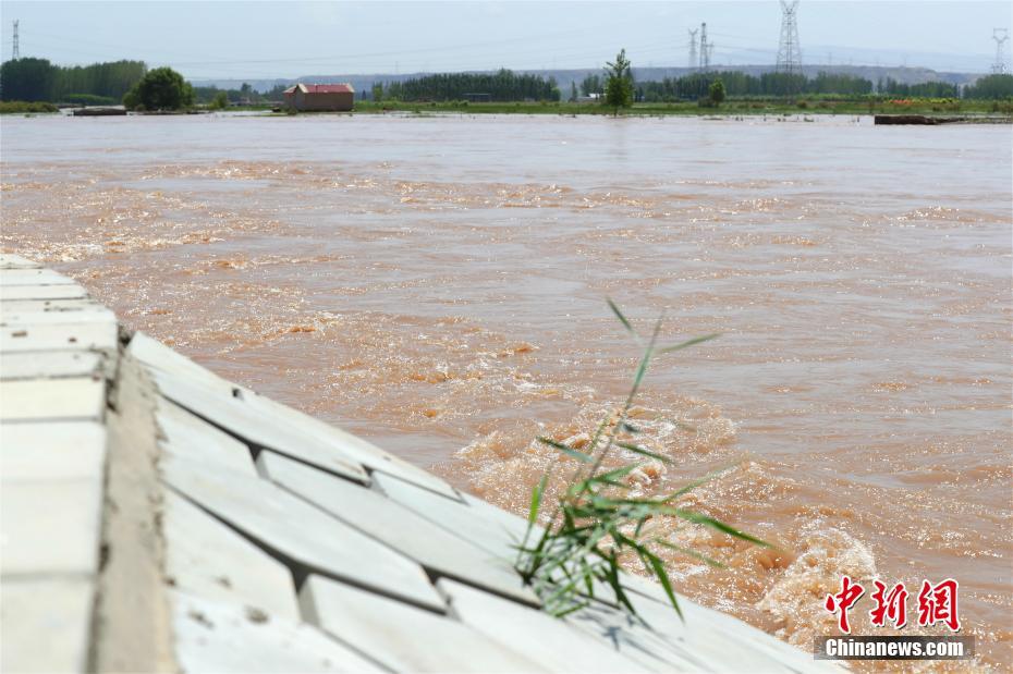 7月19日,黄河宁夏中卫段入境流量为每秒2040立方米,可见远处因水位上涨被淹没的河滩。据了解,近日,甘肃、陕西等黄河流域普降大到暴雨,12日12时,黄河1号洪峰进入宁夏,入境流量达到每秒2100立方米,继2012年以来,黄河宁夏段首次发布IV级预警。中新社记者额丽其格 摄