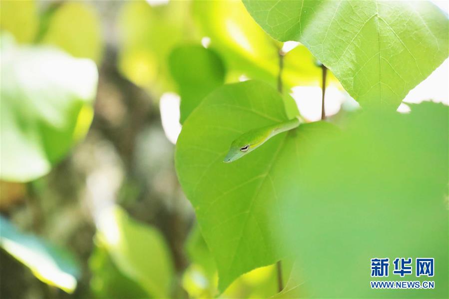 这是7月19日在马来西亚沙捞越州峇哥国家公园拍摄的绿瘦蛇。设立于1957年的峇哥国家公园坐落于马来西亚沙捞越州,拥有丰富的野生动植物物种。新华社记者 朱炜 摄
