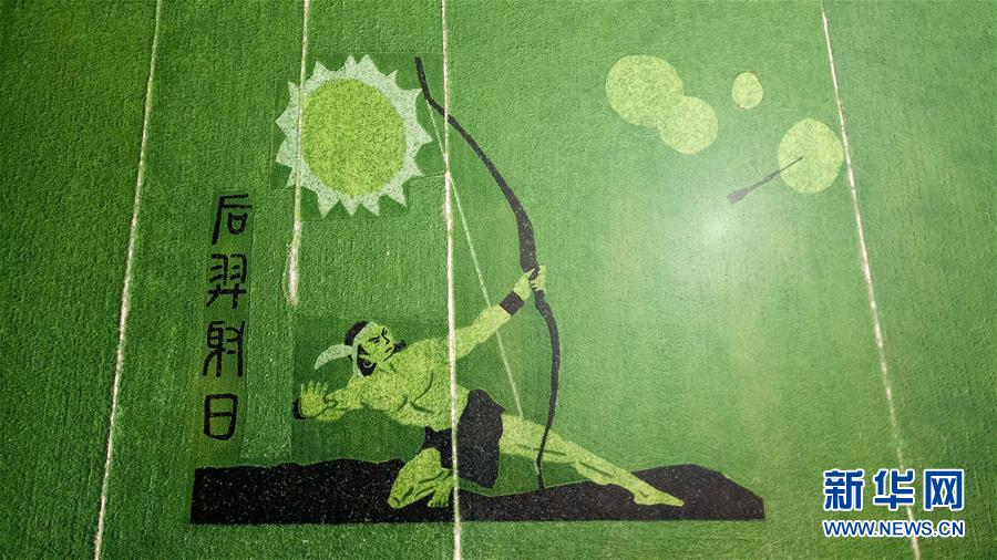 这是7月29日在安徽寿县安丰塘水库北堤拍摄的“稻田画”(无人机拍摄)。 新华社记者 张端 摄