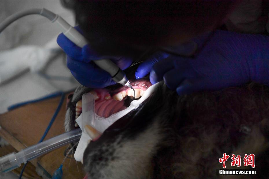 8月9日,兽医使用洗牙机为老虎洗牙。当日,位于昆明的云南野生动物园兽医通过呼吸麻醉的方式,为园中一只一岁的老虎清洁牙。中新社记者 刘冉阳 摄