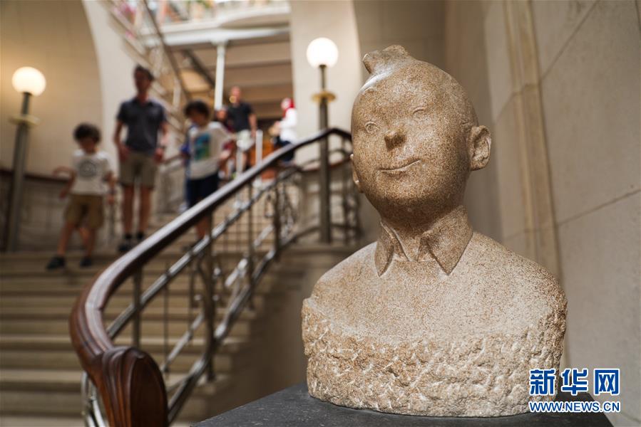 这是8月12日在比利时首都布鲁塞尔的比利时漫画博物馆拍摄的丁丁漫画形象雕塑。比利时是丁丁和蓝精灵等著名漫画形象的诞生地。比利时漫画博物馆位于布鲁塞尔市中心,展示着漫画艺术的发展历程、漫画家作品以及各类漫画展览,被称为“漫画爱好者的天堂”。新华社记者郑焕松摄