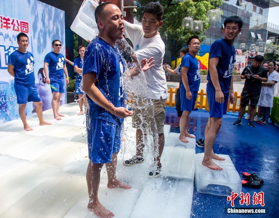 一位参赛选手挑战淋冰水。中新社记者 张畅 摄