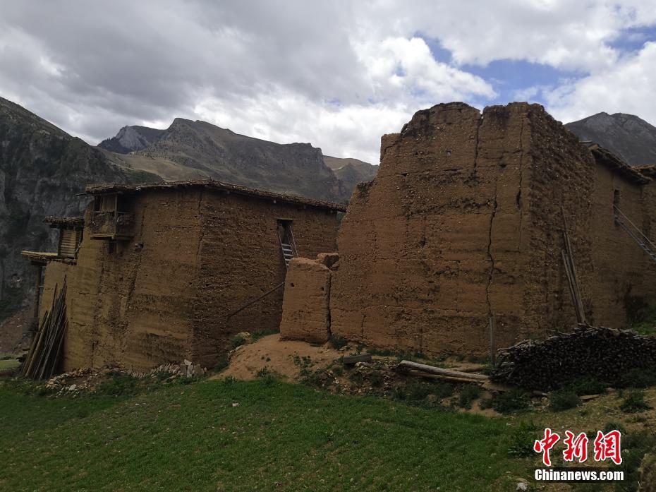三岩片区“碉楼”民居建筑外墙均为土质围墙,不设窗户。中新网记者 吉祥 摄