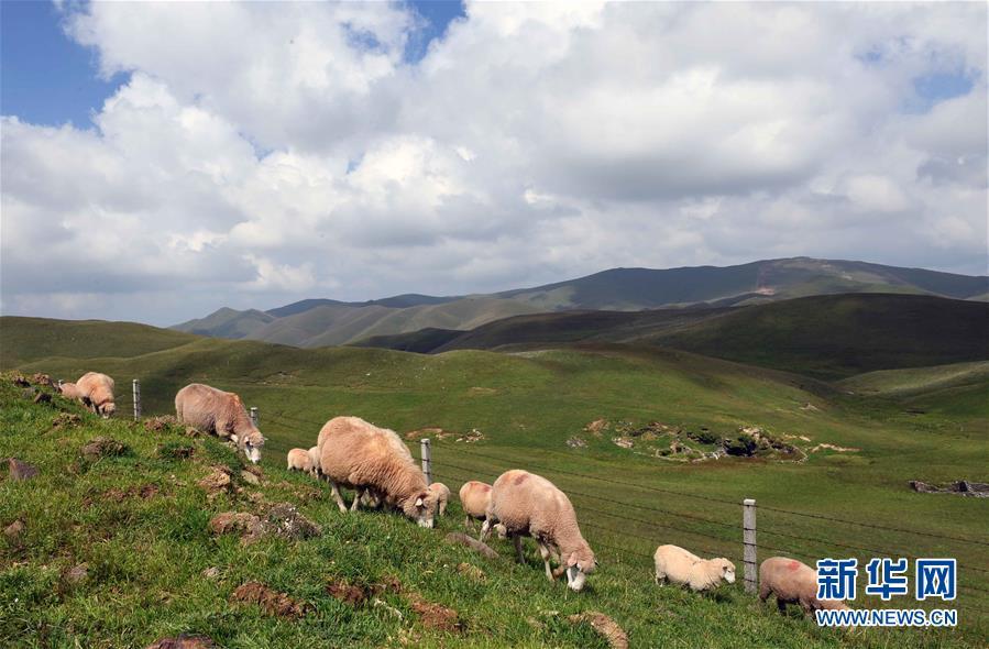 8月27日,当地农民饲养的羊在大海草山吃草。新华社记者杨宗友 摄