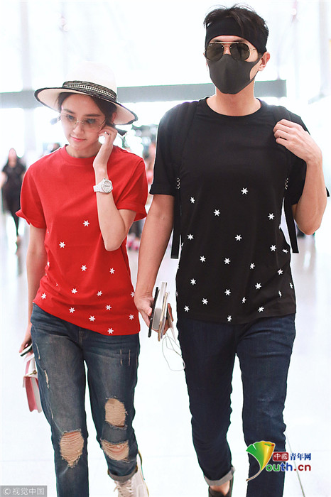 2日,唐艺昕与张若昀现身机场。唐艺昕梳牛角小辫俏皮可爱,获男友张若昀挽手护驾,两人穿“黑红配”情侣装高调秀恩爱。