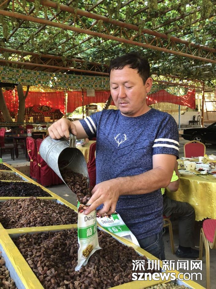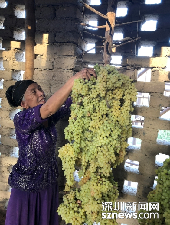 维族老乡晾晒葡萄 赵春丽摄