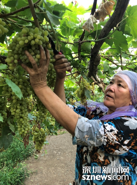 维族老乡采摘葡萄 赵春丽摄