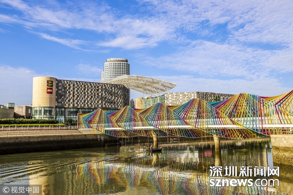 “七彩桥”亮相青岛 色彩斑斓宛如童话世界