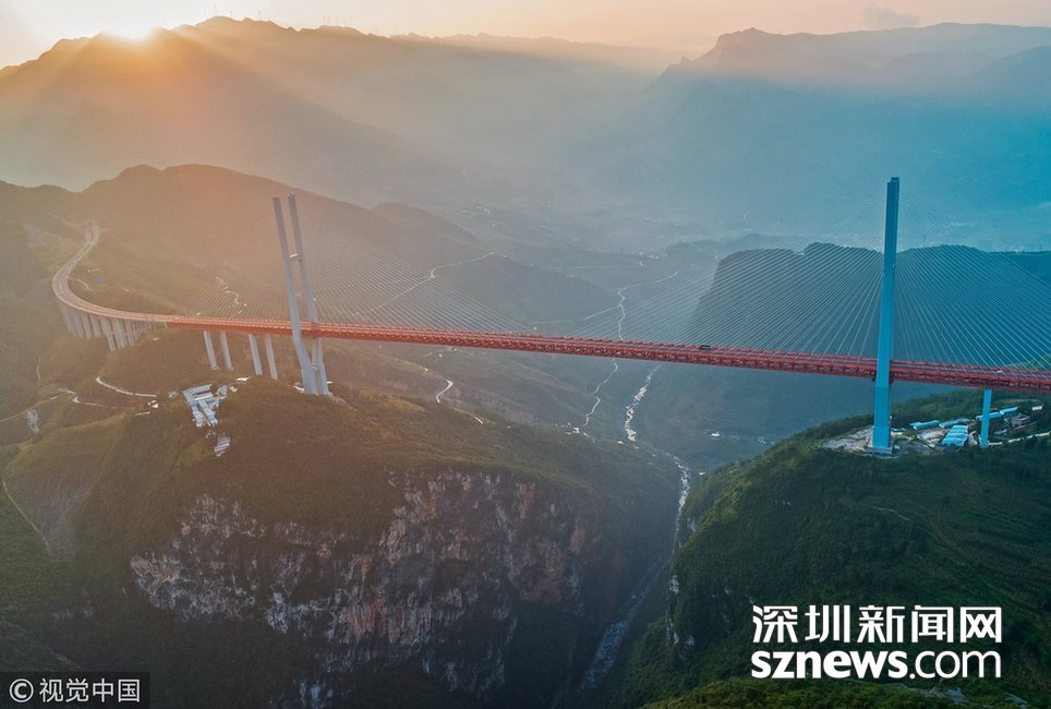 深圳新闻网讯 毕都高速公路北盘江大桥是杭瑞高速公路毕都段的控制性工程,位于贵州省和云南省交界处,由贵州省和云南省共建。该桥桥面至江面高差达 565 米,成为目前世界第一高桥。主桥为钢桁梁斜拉桥,主跨 720 米,目前位居同类型桥梁2016 年12 月 29 日正式通车。