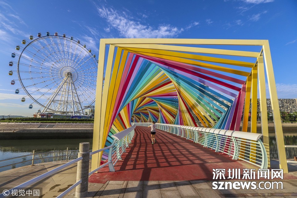 “七彩桥”亮相青岛 色彩斑斓宛如童话世界