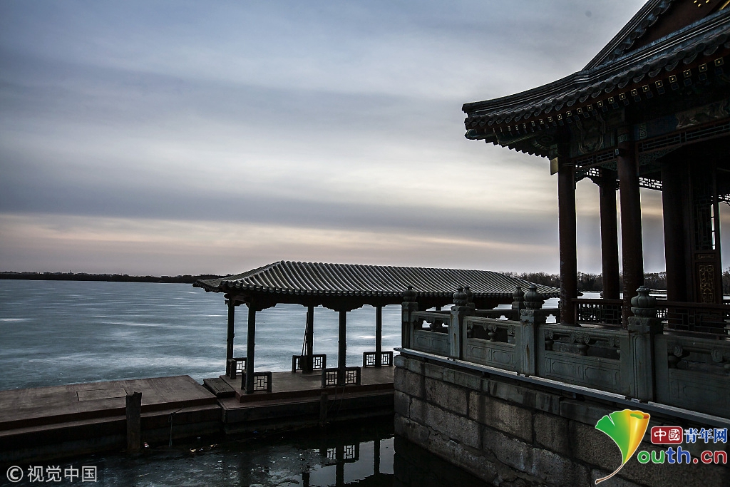 2018年2月23日,北京颐和园。当天日落时分昆明湖上空出现夕阳余晖的美景,梦幻般的色彩将古老的皇家园林装扮得美轮美奂,让人流连忘返。