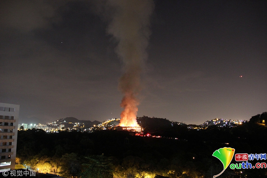 当地时间9月2日晚,巴西里约热内卢一座有着200年历史的博物馆发生大火。当地电视台的画面显示,大火已经蔓延到大楼的所有地方。
