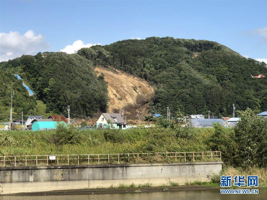9月6日,在日本北海道厚真町,地震导致山体滑坡。 新华社记者邓敏摄