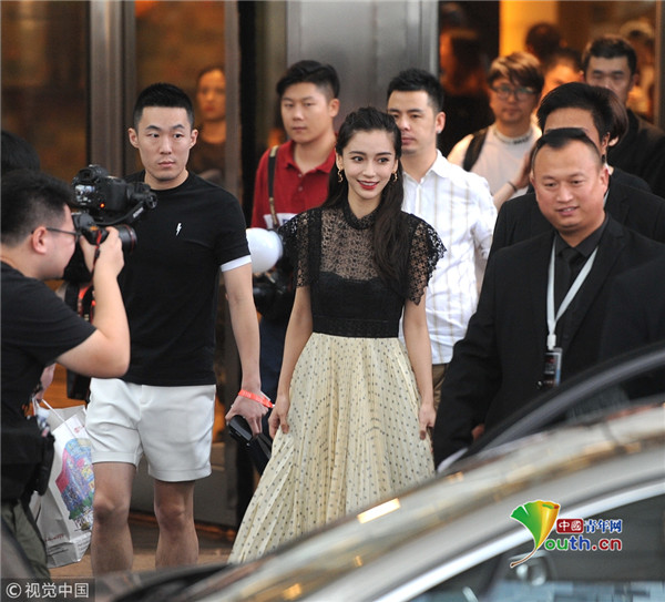 2018年9月6日,上海,Angelababy现身某酒店,她身穿黑色蕾丝薄纱裙小秀性感,走路带风仙气十足。