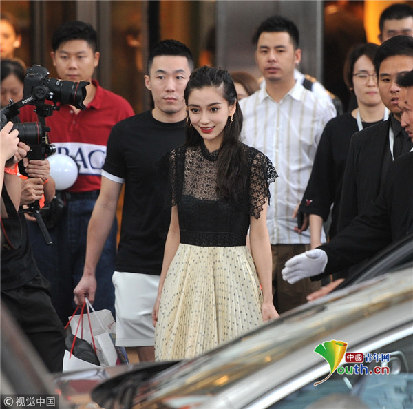 2018年9月6日,上海,Angelababy现身某酒店,她身穿黑色蕾丝薄纱裙小秀性感,走路带风仙气十足。