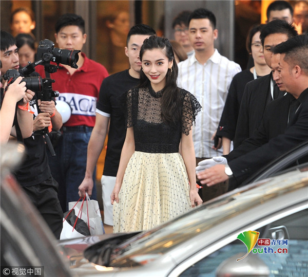 2018年9月6日,上海,Angelababy现身某酒店,她身穿黑色蕾丝薄纱裙小秀性感,走路带风仙气十足。