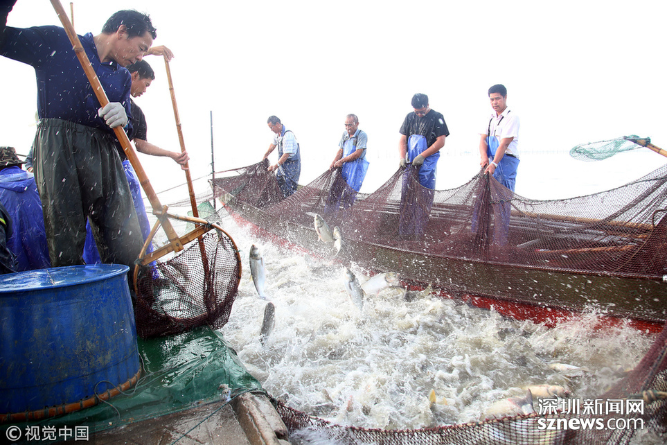 2018年6月26日,江苏省常州市嘉泽镇捕捞村的渔民组织夏季捕捞,一网鱼达五万余斤,以鲢鱼为主,供应市场需求。夏捕的鱼价较平时有所上涨,渔民粗略估计可增收上万余元。