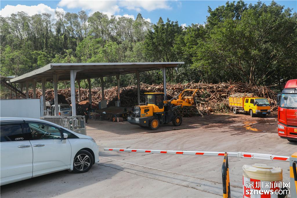 这几天陆续运来的树枝、落叶数量,将达到树枝粉碎场日处理量的3倍以上。处理后的树枝和树叶将会被运往韶关一家生物质发电厂,进行焚烧发电。而一些大型的树干,则被锯成小段,再运往外地的造纸厂和木板厂作为生产原料循环利用。