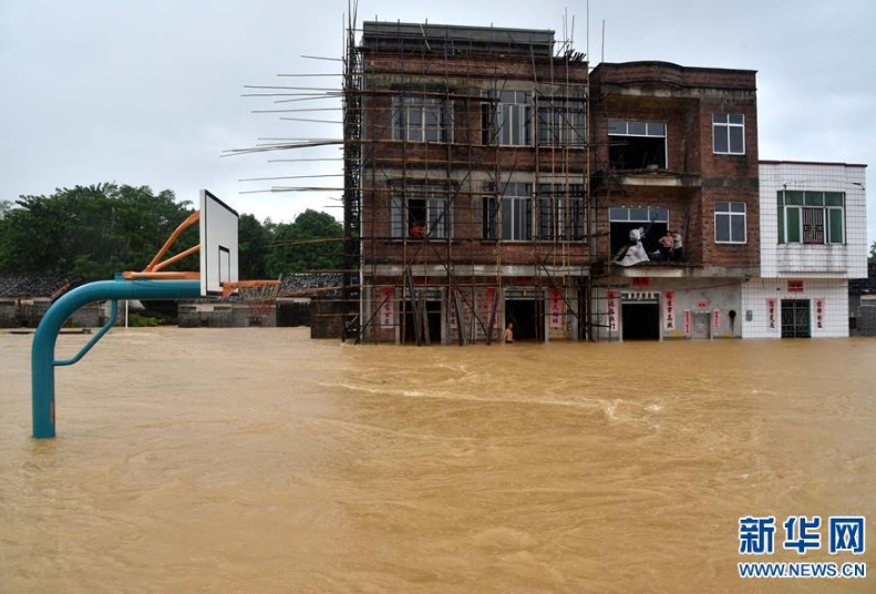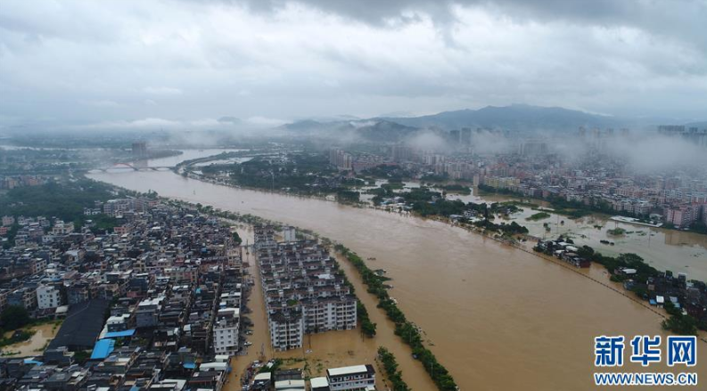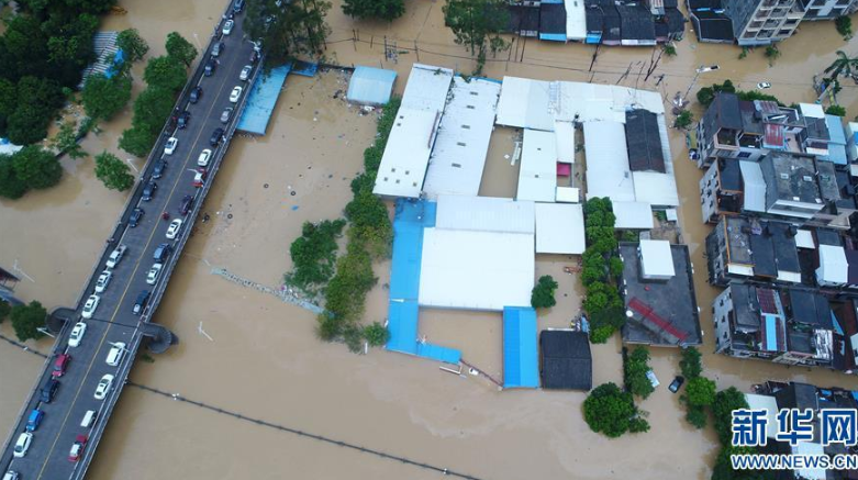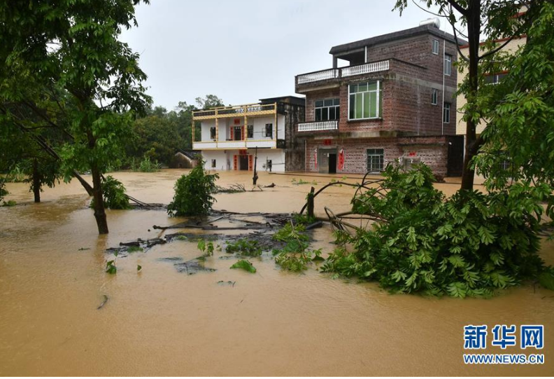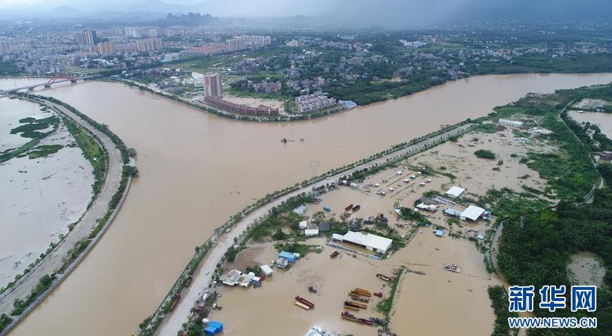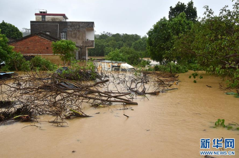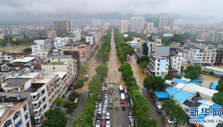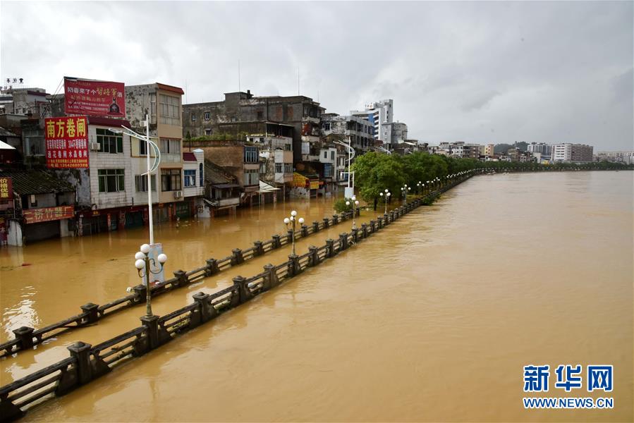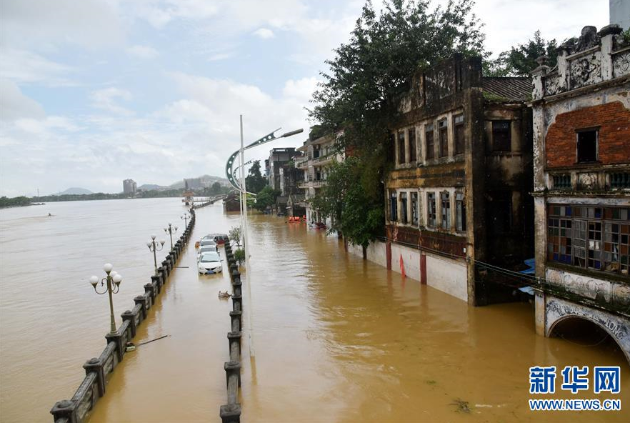 9月18日,阳春市漠阳江畔的街道被洪水淹没。 新华社记者 周科 摄