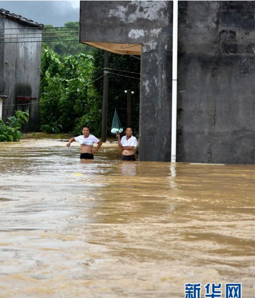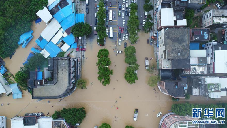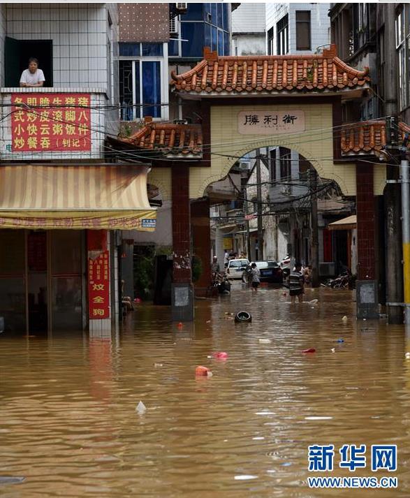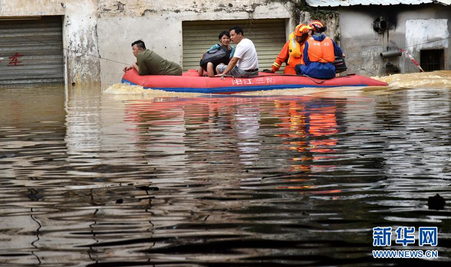 9月18日,阳春市胜利街积水严重。 新华社记者 周科 摄