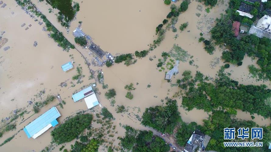 这是9月18日在广东省阳江市阳春市拍摄的水浸情况(无人机拍摄)。 新华社记者张加扬摄