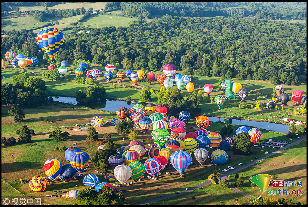 英国170多只热气球齐飞创纪录 如田园梦幻世界