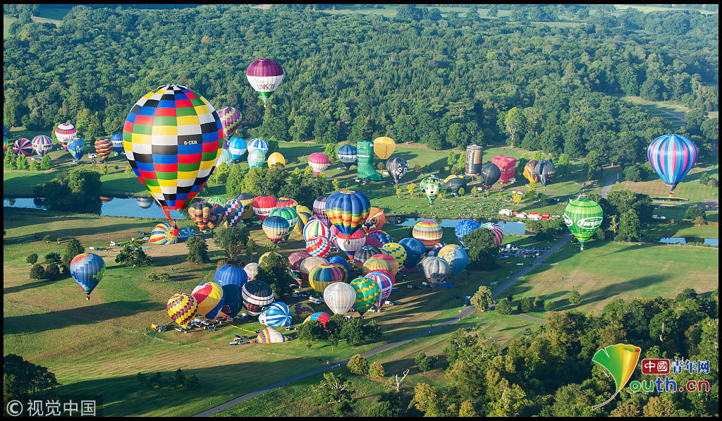 英国170多只热气球齐飞创纪录 如田园梦幻世界