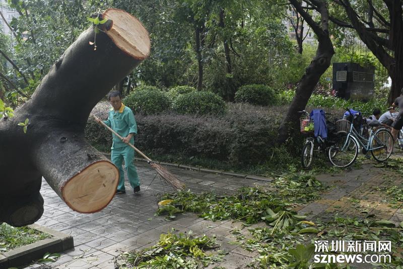 2018年9月17日9点58分,莲花西地铁站A出口,一名环卫工人正在清扫路面。(摄影:杨浩翰)
