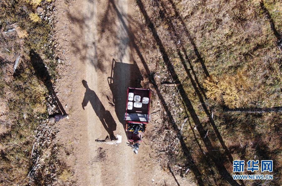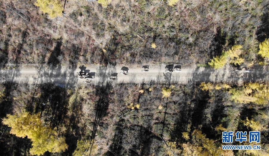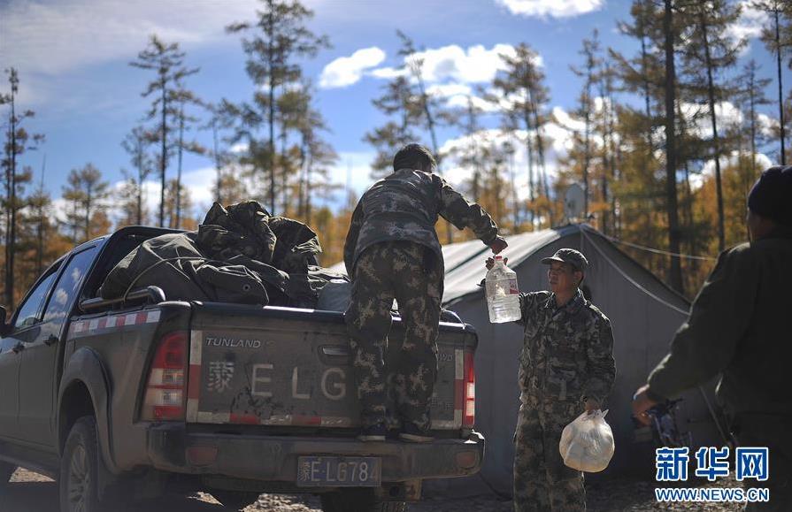 9月18日,在内蒙古大兴安岭根河林业局约安里林场,林场职工为驯鹿养殖基地运送给养。新华社记者于洋摄