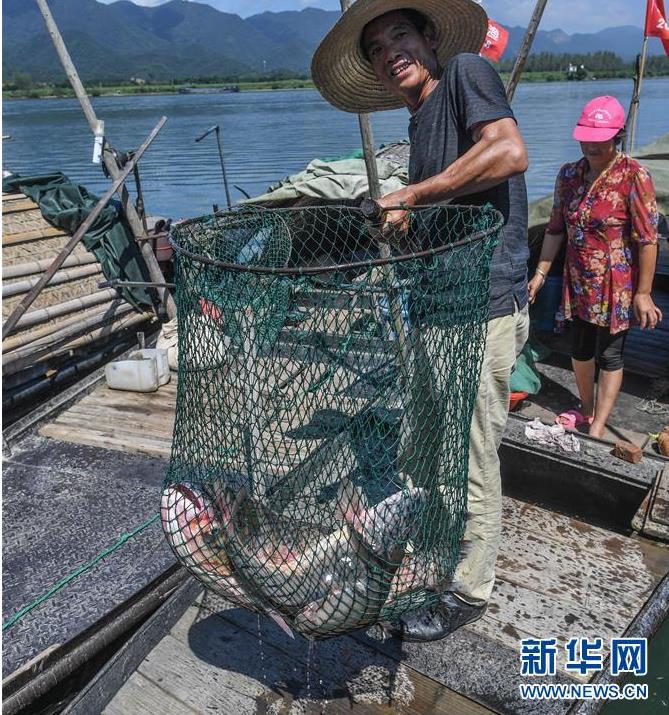 9月18日,渔民展示刚刚捕捞上来的江鲜。